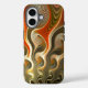Phone case with "Set Phasers," an abstract fractal design by Susan Wallace. Copyright © 2010, Susan Wallace. Flares of vivid orange, gold and cream on a black background twist outward and upward.