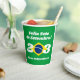 Celebrate the 203rd year of Sete de Setembro (Independence Day of Brazil) with these striking September 7th paper cups, which feature the brilliant, iconic colours of Brazil's national flag with the numbers "2" and "3" bracketing the national motto. Reverse shows identical design.