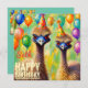 2 partying emus celebrating Seth's birthday. The greetings on the card are "Seth Happy Birthday". On the back of the card is a small version of the same picture. There is plenty of room to write a message. Made with the assistance of Bing.