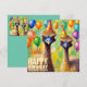 2 partying emus celebrating Seth's birthday. The greetings on the card are "Seth Happy Birthday". On the back of the card is a small version of the same picture. There is plenty of room to write a message. Made with the assistance of Bing.