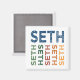 A cute, colourful first name Seth design in blue, green, red, orange and peach for a personalised touch. Cool, fun typography makes a great gift for the Seths in your life from kids to adults. A modern, cute addition to Seth's room.