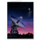 A radio telescope similar to the 70-metre antenna at Goldstone, California points towards the sky, listening for radio waves from space originating from intelligent life. A bright star shines far away in space. Molecules and cells emanate from this star, representing the life on this distant planet. From an original painting in the collection of the SETI Institute.