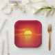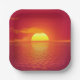 Setting Sun over Orange Sea Calm Ocean Sunset Paper Plate