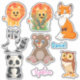 Seven cute, colourful cartoon animals with personalised names for boy and girl.