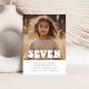 A 7th Birthday invitation featuring your own photo and the word 'seven' in a groovy style font over the top. Perfect for your retro themed Birthday party!