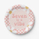 Seven is a Vibe! Retro chequered print with Daisies Birthday party plates in pink.