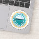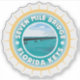 The seven mile bridge in the Florida Keys on US 1, the Overseas Highway, connects Marathon and Knight's Key to Little Duck Key. This spectacularly scenic bridge on the road connecting Miami to Key West offers views of the gorgeous teal water of the Keys. This design features an artistically rendered scene of the bridge inside a circle with the words Seven Mile Bridge Florida Keys and a sun motif in beach colours.