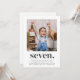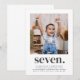 A modern 7th Birthday invitation featuring your own photo and the word 'seven.' underneath.