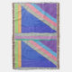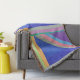 A quality printed throw has its advantages. This is a much finer weave throw than its loopier cousins, and though lighter, it is worth the investment for custom room accessorizing. The back is much prettier than the typical brown, and the fringe on the long sides very vivid, the selvage nicely done. Before photographing, I washed the throw in cold water, delicate, with a thicker woven throw the same size. On tumble dry low, this throw was dry in half the time as the other. This is a very practical quality if you use throws for furniture covers or to wrap up in frequently. The sleekness of the fabric makes it a great layer for accenting or protecting without the feeling of sitting on too much stuff. Perfect for napping or when you feel a light chill coming on. The color printing is beautiful and on this fabric, matched the design and color of my Photoshop image. This is an advantage for blending room fabrics and colors. The fringe on the short sides prints the colors from the design image and therefore varies from the side fringe. I streaked a white fractal line through the plaid pattern to give the illusion of weaving. This printed as crisp as an illusory thread, and put some white in the short side fringe, showing another advantage of print vs loomed- for artistic purposes, line lines, detail, and color integrity can be planned and preserved. My loomed throws have color limitations and more of a needlepoint texture. Print throws reproduce an exact image. The throw felt a little stiff straight out of the package, but this went away in the first delicate wash. Of course I searched the wash water for ink or bleeding and there was none.