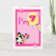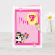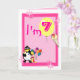 I'm seven birthday card with funny clown, penguin and ice cream and balloons, on a pink background. Easily personalise this design by adding or changing the text.