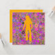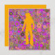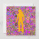 Let those vibes reach you with this cool customisable invitation, with on the front a yellow silhouette of a funky disco dude on a background of multicolor (pink!, purple!)seventies circles and music records shapes.
