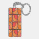 Keyring with seventies design, illustrated with abstract and rounded shapes in orange tones
