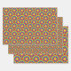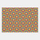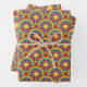 Each sheet of wrapping paper in this set of three features a groovy graphic pattern inspired by the 1970s with overlapping discs in a rainbow of colours centred with a slightly twisted rayed sun. Edit design to change the background hues.