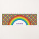 This personalised yoga mat is embellished with a groovy graphic retro style design inspired by the 1970s with overlapping discs in a rainbow of colours centred with a sun with slightly twisted rays.