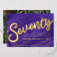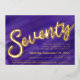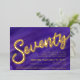 Seventy simple stroked modern art purple painted background with a gold foil text or your own foil colour overlaided. Personalise this 70th birthday party script art milestone birthday invitation with your own birthday party event details, and a photos of your birthday girl on the reverse. Other years colours and matching items are available. © Original design by Sarah Trett for www.mylittleeden.com on Zazzle.