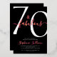 Seventy and Fabulous script, minimal gold foil modern black 70th birthday invitation that you can personalize and send out for your seventieth birthday party celebration. The "70 and Fabulous" is set in a popular script font. The text colors can be changed using the edit menu.