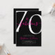 Seventy and Fabulous script, minimal pink and black modern 70th birthday invitation that you can personalise and send out for your seventieth birthday party celebration. The "70 and Fabulous" is set using popular script font typography. The text colours can be changed using the edit menu.