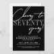 Celebrate in style with this modern elegant Seventy Birthday Party Invitation, perfect for marking a milestone in a chic, timeless way. The design features a large “SEVENTY” in light grey serif font at the top, with white script fonts above and below reading “Cheers To Seventy Years!” for a stylish, celebratory look.