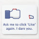 A mug for people who are annoyed with all those 'Like' requests. Shows the classic 'Like' icon with a severed thumb. Text reads as: "Ask me to click 'Like' again. I dare you."