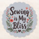 Sewing Is My Bliss Floral Typography Paper Coaster