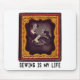 Real photograph of a Victorian woman hard at work on her 'state-of-the-art' sewing machine, along with a fun custom logo: Sewing is My life!