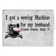 "I got a sewing machine for my husband - Good trade, huh?" A folk art picture of a vintage sewing machine with a silly joke for sewers! The perfect needleworker gift!