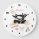 A beautiful Clock with a black vintage sewing machine surrounded by pretty colored fabric pieces, bobbins of thread, scissors and buttons. A great wall decor for any sewing room or craft shop. Would make a great gift for any quilter or sewer. The clock can be personalized by changing the name "Margaret" to another name to make it extra special.