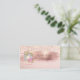 Professional fashion stylist business card featuring a beautiful sewing machine with flowers, cat and an elegant rose gold brush stroke on rose gold backgrounds. Add your name and contact details to make a lasting first impression.