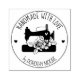 This "Handmade with love" rubber stamp features a sewing machine with custom name.