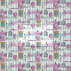 A cute sewing pattern featuring a sewing machine, thread, measuring tape, thimble and more.