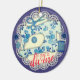 Cute vintage floral and pattern-filled sewing machine, scissors, buttons and faux lace background on this Christmas tree ornament for seamstress or crafter.