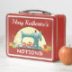 This is a standard metal lunchbox that appears to work just fine. We designed this box ourselves with an uploaded photo and custom text on the front and back. It looks absolutely beautiful except the front of the lunchbox is not centered like it shows in the photo. The print borders don't align with the inset flat part of the box where the preview photo online showed it perfectly centered in there. The back looks nice and centered though.