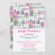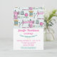 A super cute sewing party retirement invitation featuring a sewing machine, spools of thread, tape measure, buttons and more.