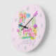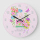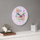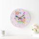 Sewing Ribbon Floral Monogram Pink Large Clock