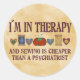 "I´m in Therapy - And sewing is cheaper than a psychiatrist!" Colourful needleworkers design, and the perfect gift for sewing machine addicts!