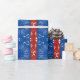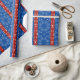 Seamstresses, quilters and anyone with a love of sewing and crafting will appreciate this red and blue wrapping paper full of images from the sewing cabinet. Irons, needles, scissors, and rick rack on a feminine floral background.