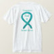 Sexual Abuse awareness uses a teal ribbon for its cause awareness. The shirt art features a teal awareness ribbon art painting. The awareness angel t-shirt message notes "Awareness, End It, Sexual Abuse". There is a large image on the back of the shirt and a smaller picture on the front of the shirt. The teal awareness ribbon art apparel can be customised with personalised messages to make great cause event clothing for fundraiser shirts, group team walk shirts, awareness t-shirt gifts, or other special cause events occasions for merchandise to help increase this cause's awareness in public for society's help in creating help & cause change.