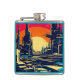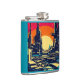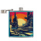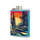 SF Futuristic City Woodcut 1 Hip Flask