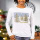 A familiar, Holiday greeting, has been digitally-edited, to create this, graphic drawing, of guilded-gold, trees, grouped together, upon a snowy, backdrop-with glowing, Symbolic, Holy Star, against a slate-blue, sky.