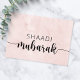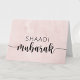 This elegant pink Islamic nikah wedding congratulations card features the word "Shaadi Mubarak" on a pink floral background in a modern script font. Perfect card to go with a wedding gift or by itself with a monetary gift at the walima or shaadi marriage ceremony, reception, or henna party day.