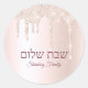 Shabbat Shalom Jewish Rose Gold Glitter Drip Classic Round Sticker