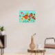 Shabby Aqua Orange Red Watercolor Poppy art Poster