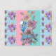 Shabby Chic Budgie Pastel Blue Stripe Art Postcard