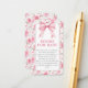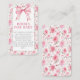 Celebrate the upcoming arrival of your baby girl with our elegant Shabby Chic Coquette Pink Love Shack Baby Shower Books for Baby Enclosure Card. This fancy collection features delicate pink watercolor roses accented with a feminine pink coquette bow, exuding vintage charm and modern sophistication. Perfect for a baby girl shower, this invitation sets a beautiful tone for your special event, blending timeless elegance with a touch of feminine grace.