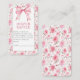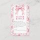 Celebrate the upcoming arrival of your baby girl with our elegant Shabby Chic Coquette Pink Love Shack Baby Shower Diaper Raffle Enclosure Card. This fancy collection features delicate pink watercolor roses accented with a feminine pink coquette bow, exuding vintage charm and modern sophistication. Perfect for a baby girl shower, this invitation sets a beautiful tone for your special event, blending timeless elegance with a touch of feminine grace.