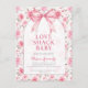 Shabby Chic Coquette Pink Love Shack Baby Shower Invitation - Celebrate the upcoming arrival of your baby girl with our elegant Shabby Chic Coquette Pink Love Shack Baby Shower Invitation. This fancy invitation features delicate pink watercolor roses accented with a feminine pink coquette bow, exuding vintage charm and modern sophistication. Perfect for a baby girl shower, this invitation sets a beautiful tone for your special event, blending timeless elegance with a touch of feminine grace.