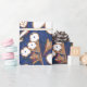 Shabby Chic Deep Blue White Retro Daisy Pattern Wrapping Paper
