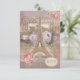 Elegant French Eiffel Tower Parisian RSVP flat cards for weddings, baby showers or birthdays with a beautiful printed shabby chic collage of vintage music sheet, pretty jewels, pink roses and spring flowers and the Eiffel Tower. On the reverse of the invites is a gold Eiffel tower and a glamourous antique printed pearls and lace mat with text for you to personalise with your details. Classy, trendy, girly invites. Perfect for a spring, summer or fall / autumn event. PLEASE NOTE - ALL INVITATIONS ON ZAZZLE HAVE FLAT PRINTED IMAGES. Pearl mat by ©Hazel Kinvig-Paul www.design-a-dream.co.uk If you need assistance customising your product please contact me through my store. I will be happy to help. I have matching products in my store.