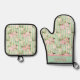 Shabby Chic Green White Stripes and Floral Oven Mitt & Pot Holder Set