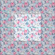 Shabby chic pastel pink roses and blue flowers in a seamless pattern.